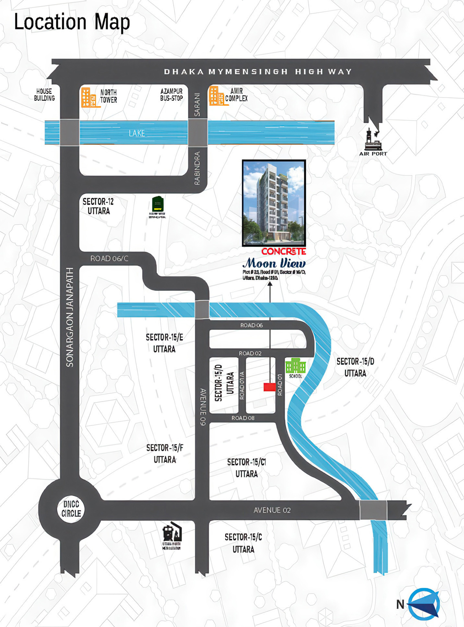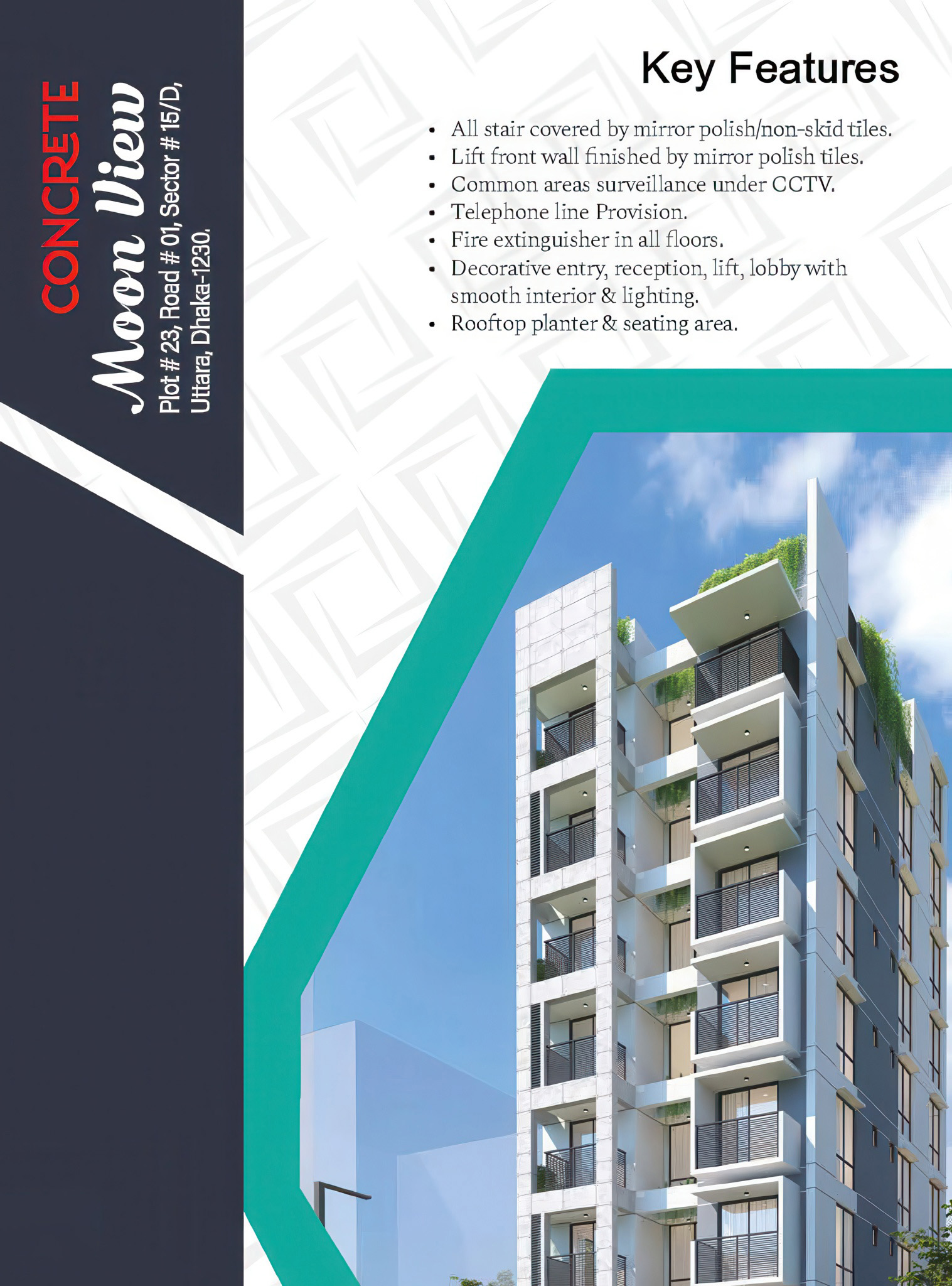 It is a great deal of pleasure to introduce our new project, CONCRETE Moon View. South Facing 4-bed room apartments with a total area of 1720 sqft. With it's LAKESIDE setting it's deemed one of the calmest & quiet residential areas for peaceful living in Bangladesh.